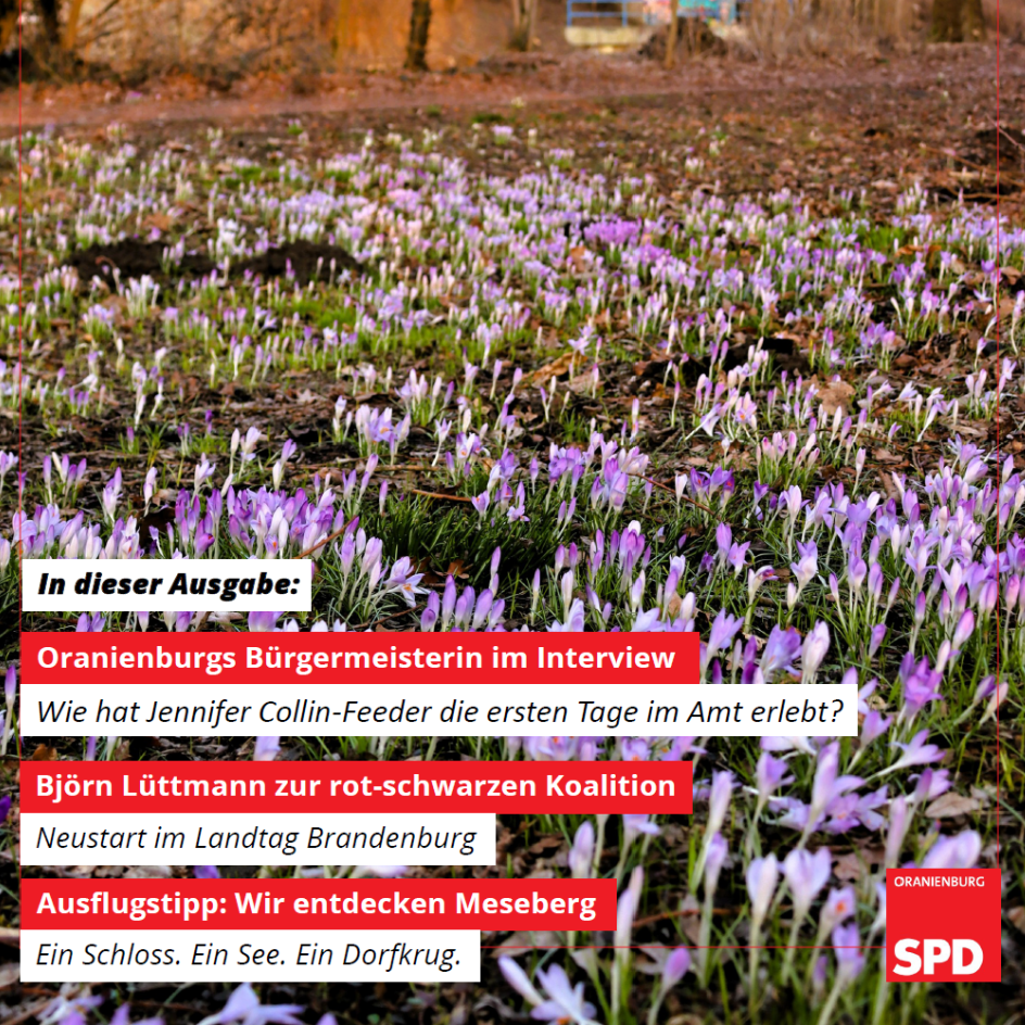Hören Sie es schon zwitschern? Nein, nicht die Singvögel, die den Frühlingsbeginn begleiten. In das Oranienburger SPD-Büro ist wieder ein Schwarm Rotkehlchen eingezogen – unser beliebtes Oranienburg-Magazin.Als Tierfreunde hält der Ortsverein sie aber nicht fest: In den kommenden Wochen werden sie weiterfliegen und sich in Oranienburgs Briefkästen einnisten. Im Gepäck haben sie viele aktuelle Informationen aus Oranienburg. Seien Sie gespannt!
