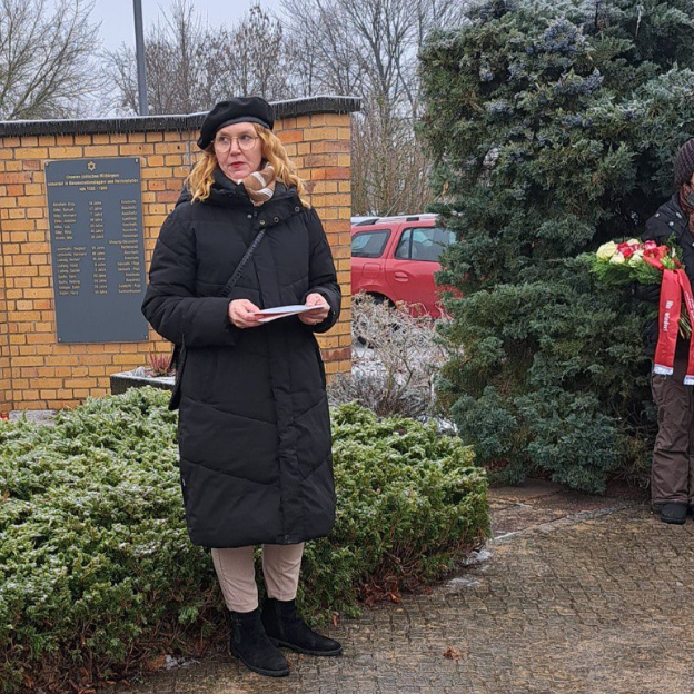 Jetzt ein harter Schnitt inhaltlich, obwohl zeitlich nah beieinander: Bundespräsident Roman Herzog (CDU) hat 1996 den 27. Januar zum Gedenktag (Befreiung des Konzentrationslagers Auschwitz) erklärt. Am Dienstagvormittag hat Elena Miropolskaja von der jüdischen Gemeinde zum Gedenken aufgerufen. Trotz des widrigen Wetters beteiligten sich zahlreiche Menschen an dieser Gedenkveranstaltung. Oranienburgs neue Bürgermeisterin Jennifer Collin-Feeder (SPD) und der Vorsitzende der Oranienburger Stadtverordnetenversammlung Dirk Blettermann (SPD) legten für Oranienburg ein Blumengesteck zu Ehren der Ermordeten nieder. Auch Hajo Luth war dabei. Am Nachmittag lud die Gedenkstätte Sachsenhausen zur zentralen Gedenkfeier des Landes Brandenburg ein. Oranienburgs Landtagsabgeordneter Björn Lüttmann nahm an der Spitze der SPD-Landtagsfraktion an der Veranstaltung teil. Auf einen kurzen Video-Beitrag sprachen er und andere Landtagsabgeordneten über die Erinnerungskultur des Landes.