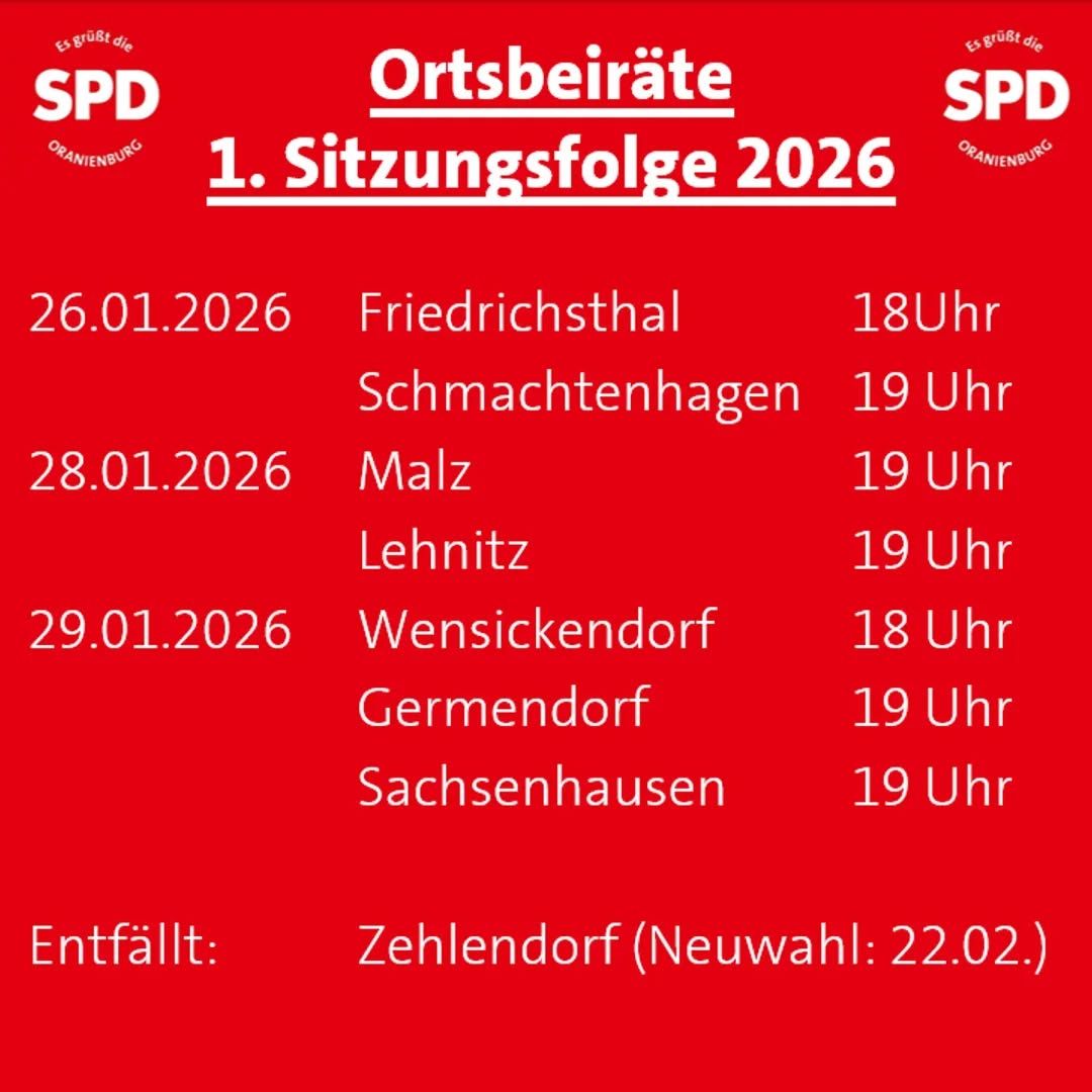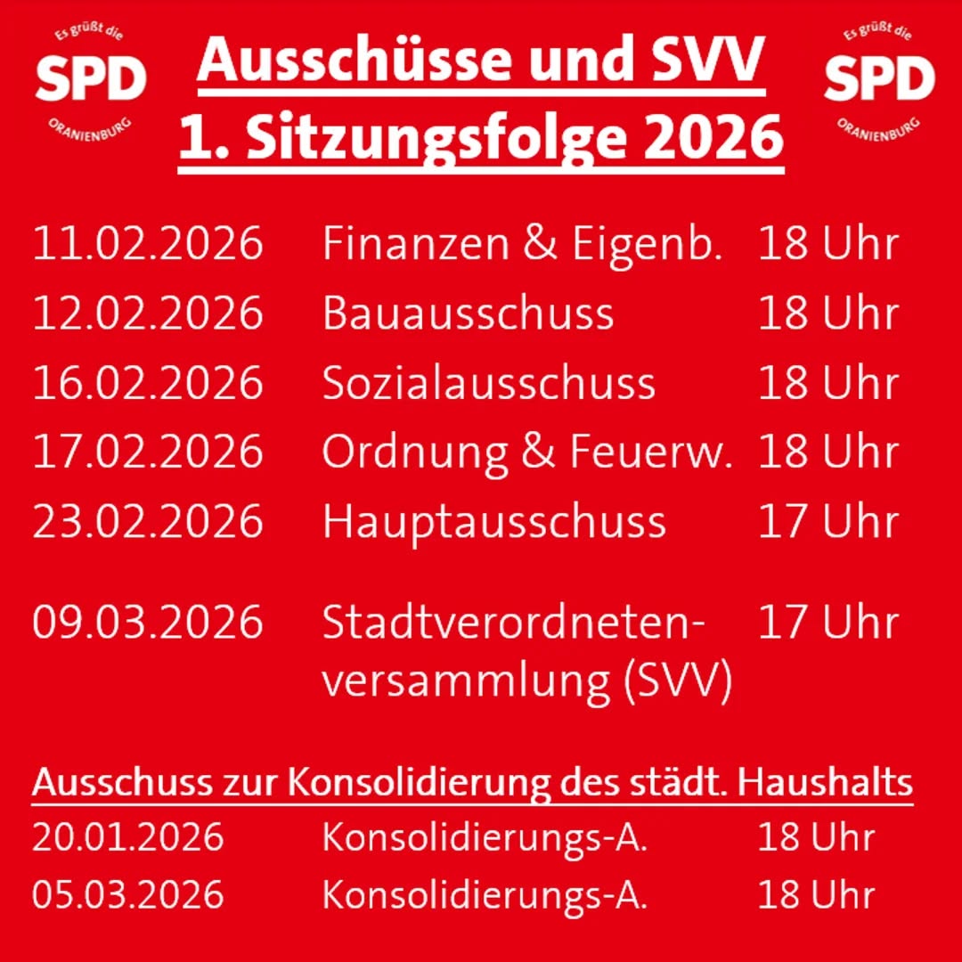 Allgemein verstärken die Oranienburger Sozis ihr Auftreten als Dienstleister: Übersichtlich haben sie die Termine der Sitzungen der Ortsbeiräte, der Ausschüsse und der Stadtverordnetenversammlung vorgestellt. Interessierte Bürgerinnen und Bürger können so die Sitzungen besuchen und am Rande mit ihren Vertreterinnen und Vertretern ins Gespräch kommen. Denn gerade das, was hier in der Kommune besprochen und beschlossen wird, betrifft uns alle ganz direkt. Also schauen Sie doch gern mal vorbei oder nutzen den Livestream: https://oranienburg.de/Politik-Beteiligung/Politische-Gremien/Livestream-Mediathek/ . Diese Woche ist auch Jennifer Collin-Feeder bei einigen der Ortsbeiratssitzungen und verschafft sich vor Ort einen Einblick in die aktuellen Themen.