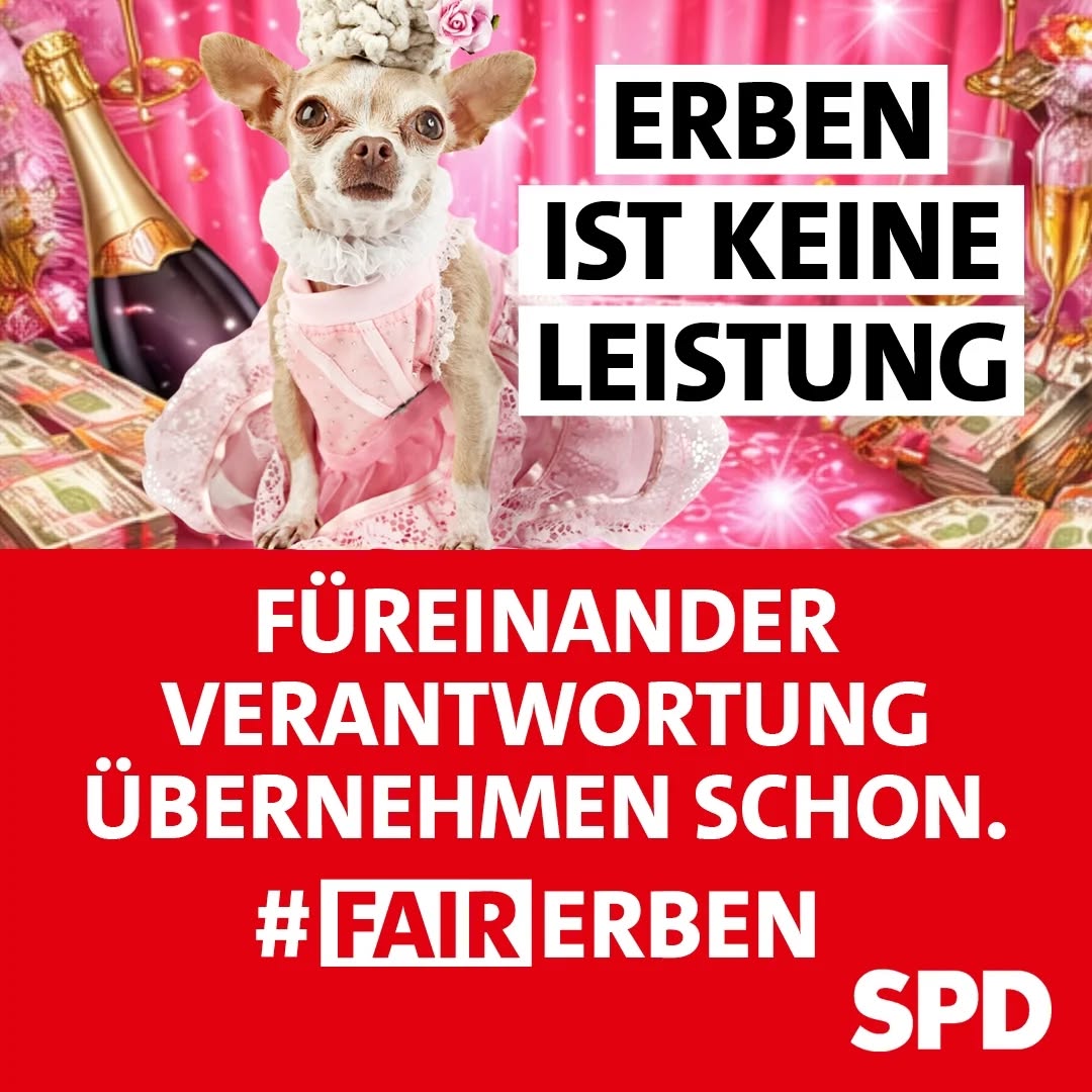 Im Bundestag ging es wieder heiß her. Die AfD hat einen Antrag eingebracht, der u.a. sämtliche Erbschaftsteuern streichen sollte. Dabei sagen über 60% der Deutschen, dass Mehrere-Millionen-Euro-Erbschaften stärker besteuert werden sollten. Wieder macht sich die verklärte „Partei der kleinen Leute“ zum Steigbügelhalter für all jene, die hohe Vermögen angehäuft haben. Dann doch lieber der SPD-Vorschlag: Hohe Freibeträge, um kleinen und mittleren Vermögen zu schützen, steuerfreies selbst genutztes Eigenheim für „Omas Häuschen“ und 5 Mio. € Freibetrag für Unternehmensvermögen. So geht Soziale Politik für Dich, statt Vermögenskonzentrationen weiter zu zementieren!