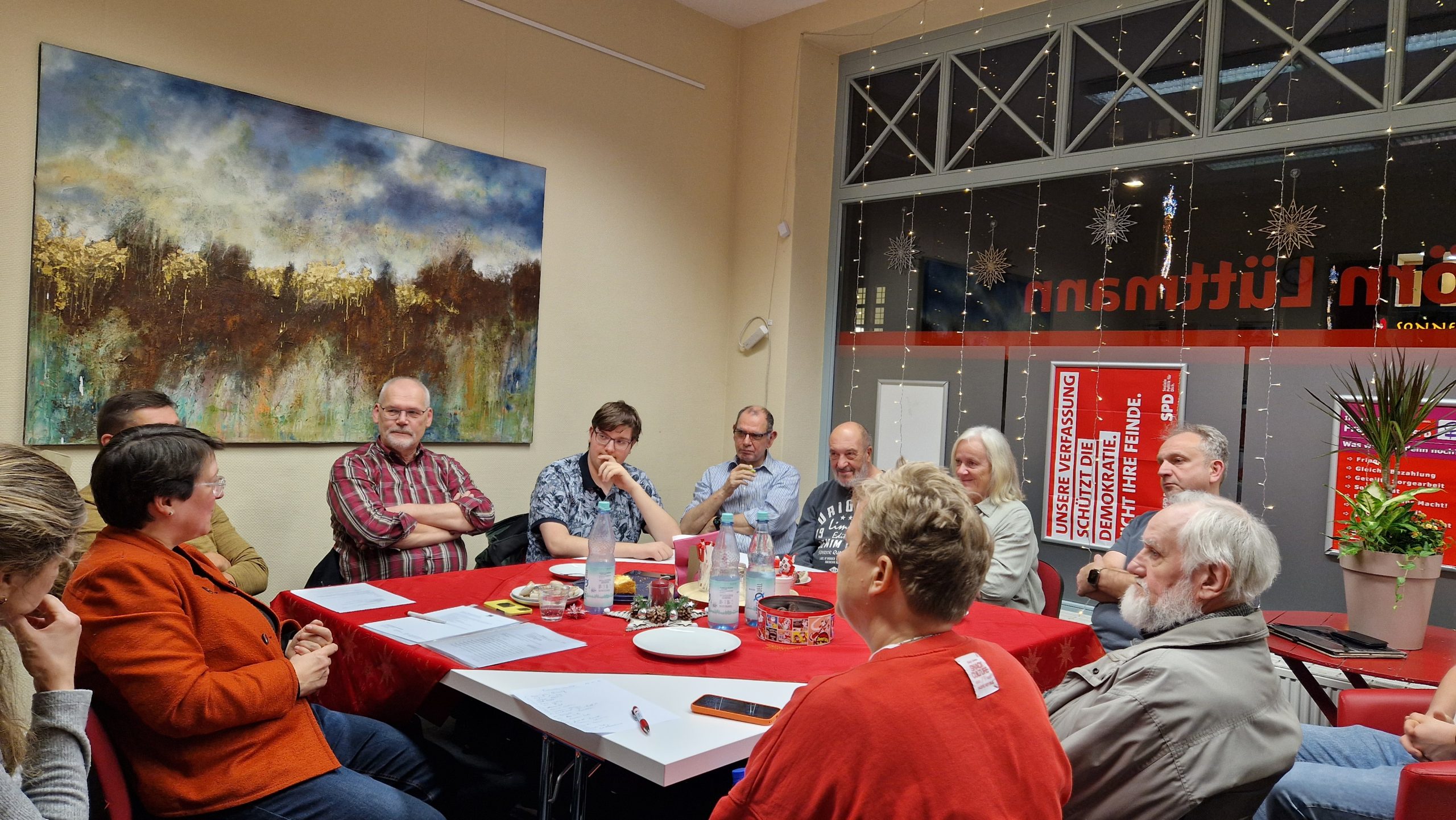 Es ist ja kein Geheimnis, dass viele Sozis in ihrer Freizeit politisch aktiv sind. Die meiste Zeit werden dann nicht nur Tannenzweige geschmückt, sondern auch Debatten und Ideen ausgetauscht. So trafen sich am letzten Wochenende der Stadtverordneten Gero Gewald, die Chefin der SPD Oranienburg Marei John-Ohnesorg und Kreistagsmitglied Judith Brandt mit vielen Oberhaveler Sozis, um in gewohnter Manier die neuesten kommunalpolitischen Initiativen zu diskutieren – immer mit dem Ziel, die sozialdemokratische Arbeit in den Kommunalvertretungen noch besser und erfolgreicher zu machen.