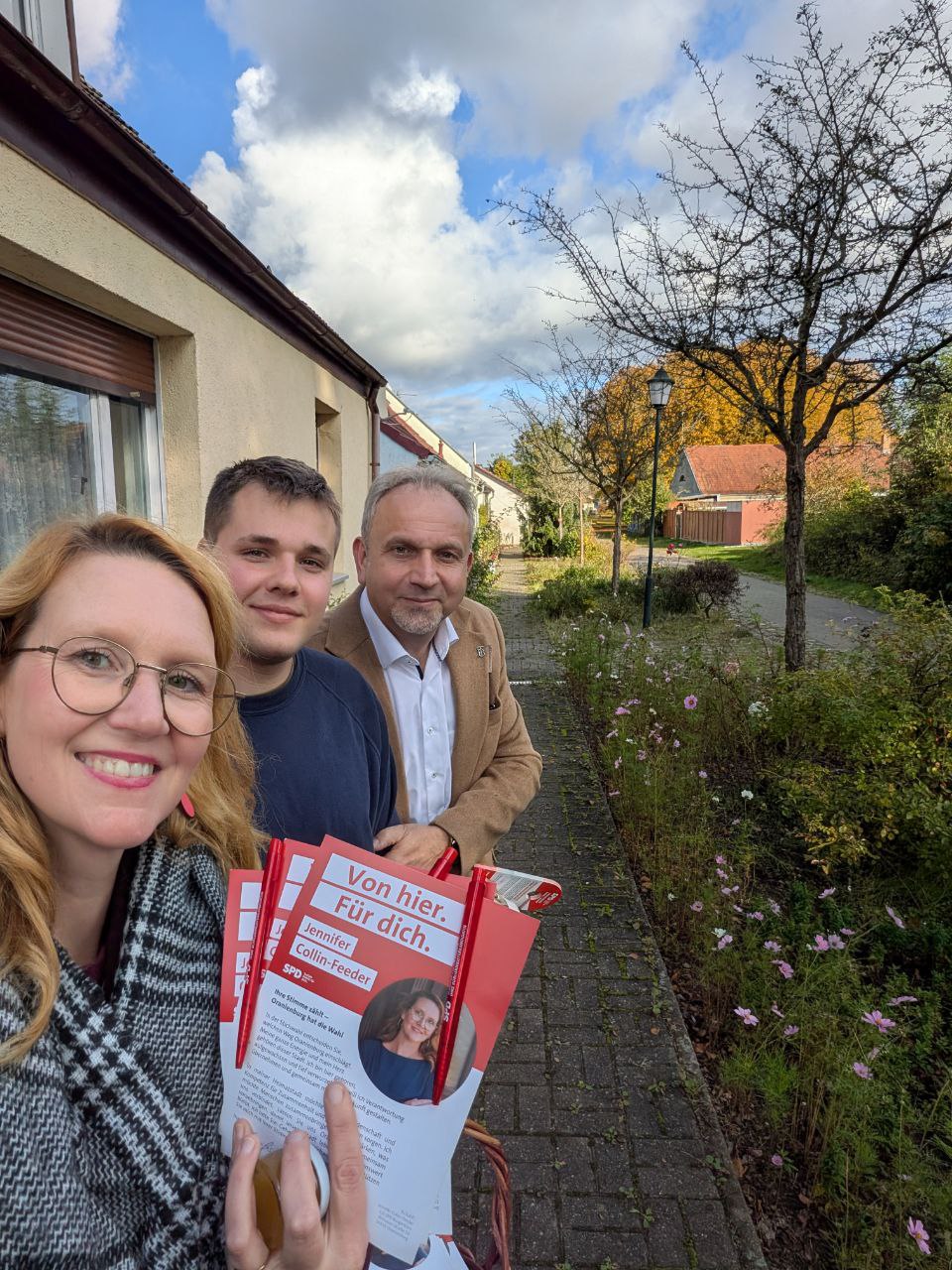 Der Haustürwahlkampf zeigt immer in aller Offenheit wie die Kandidatin der SPD, Jennifer Collin-Feeder, bei den Leuten ankommt. Montag früh, 9.30 Uhr, gleich der erste Hausbesuch: Große Freude schlug der Kandidatin entgegen, als eine Frau die Tür öffnete. Nicht nur, dass die Eigentümerin Jennifer Collin-Feeder kannte, sondern man sprach auch von früheren Zeiten. Und dann kam der Hinweis: „Sie haben bereits schon meine Stimme bekommen“. Da freut sich auch die Kandidatin!