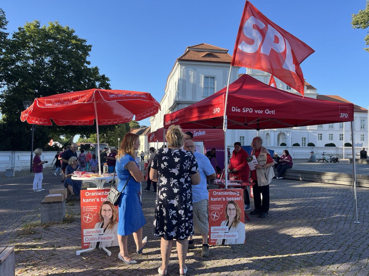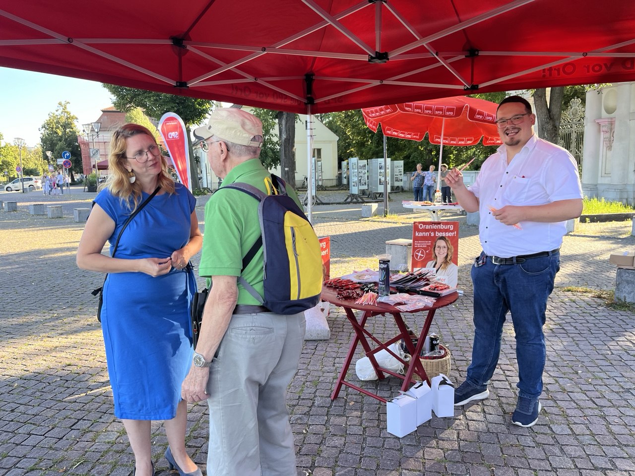 Jetzt dreht der Sommer aber nochmal mit Temperaturen um die 30 Grad auf. Das unterstützt natürlich Oranienburgs Sozialdemokraten, die jeden Tag unterwegs sind, um für einen Neustart in Oranienburg zu werben,