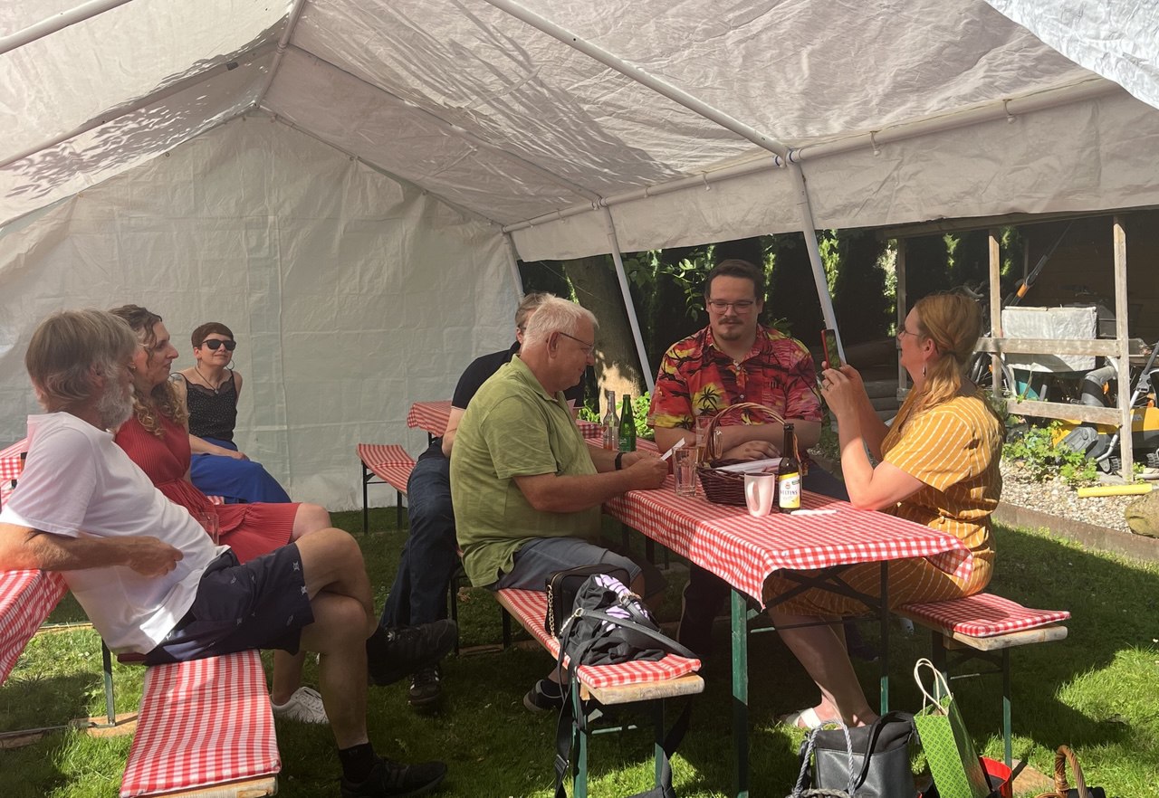 Am Samstag kamen Oranienburgs Sozialdemokraten zu ihrem Sommerfest zusammen. Diesmal stellte Hartmut Pohland sein Grundstück zur Verfügung. Die Lehnitzer Einwohnerschaft lebt nicht schlecht wurde unisono festgestellt. Oranienburgs SPD-Chefin Marei John-Ohnesorg sorgte für einige kleine Aufmerksamkeiten bei den Beschenkten für große Freude. Yvonne Lehmann, Judith Brandt und Gero Gewald waren die besonders Geehrten. Neben einem leckeren Essen und Trinken gehörten die guten Gespräche zu den Highlights der Veranstaltung.