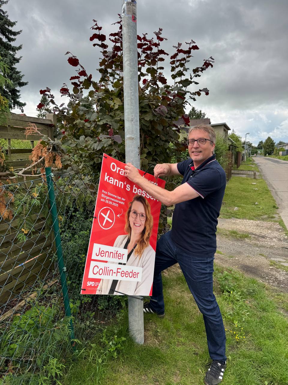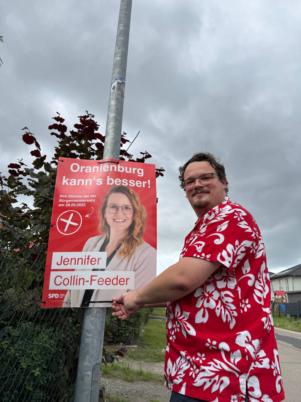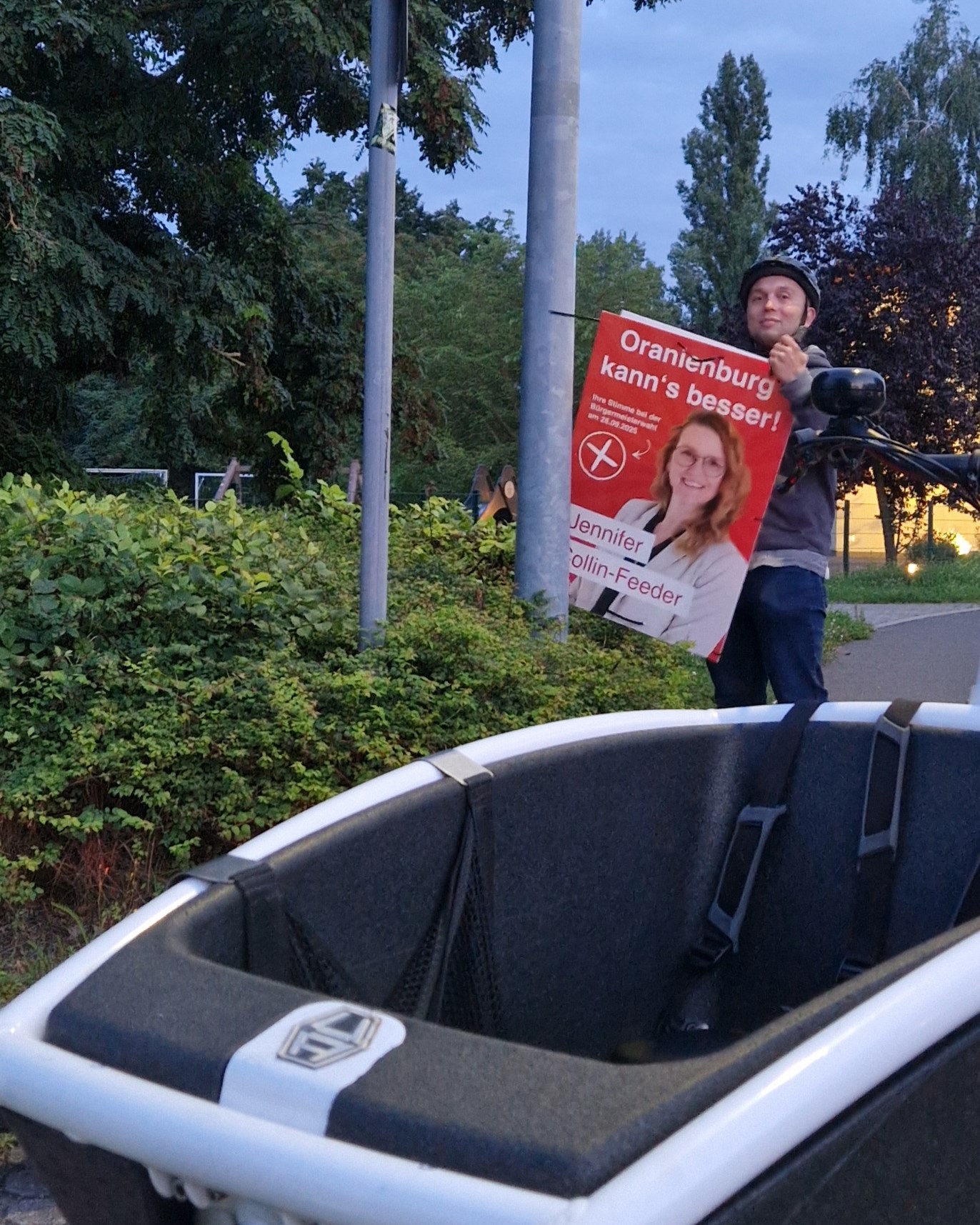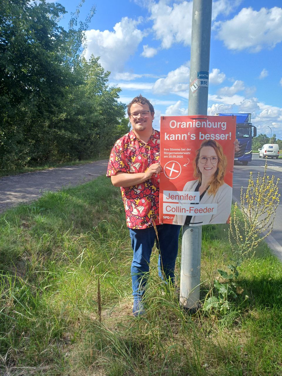 Seit letztem Montag hängen nun wieder die Wahlplakate. Am 28. September 2025 findet in Oranienburg die Wahl für das Bürgermeisteramt statt. Relativ schnell haben der Amtsinhaber und die SPD-Kandidatin Jennifer Collin-Feeder ihre bildlichen Botschaften verbreitet. Aber auch in den sozialen Medien kommt der Wahlkampf in Fahrt. Für den 2. August, also morgen am Samstag, hat Jennifer Collin-Feeder ein Imagevideo angekündigt. Wir sind gespannt.