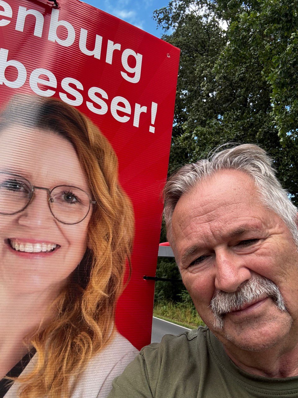 Auch auf Wahlplakaten ist die SPD-Kandidatin Jennifer Collin-Feeder mittlerweile fast im ganzen Stadtgebiet zu sehen. Eine Lokalzeitung berichtete in der vergangenen Woche von den Plakatierambitionen der verschiedenen Bewerberinnen und Bewerber. Das ist verständlich, denn neben der aussichtsreichen SPD-Kandidatin sind derzeit nur der in Kritik stehende Amtsinhaber und die Kandidatin der extremen Rechten zu sehen. Letztere hat in einem Ortsteil fast jede Laterne bestückt, bzw. bestücken lassen. Der Versuch, irgendwas zu kompensieren? Manche setzen eben auf Qualität und Erfahrung, andere auf Masse.