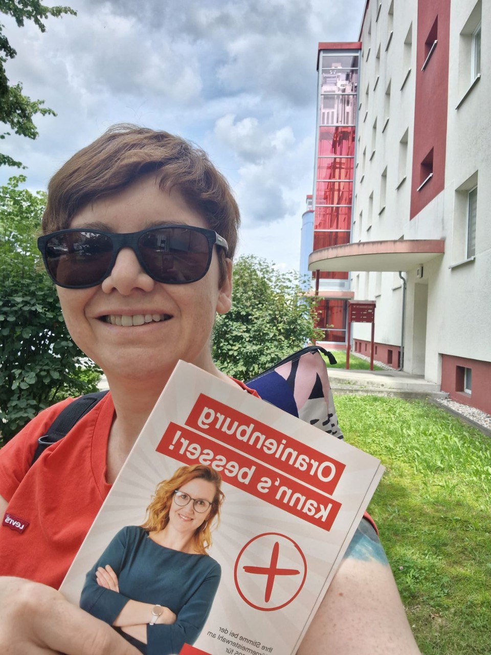 Haben Sie sie auch schon in ihrem Briefkasten? Die Broschüre über die SPD-Kandidatin Jennifer Collin-Feeder für das Bürgermeisteramt? Derzeit verteilen viele SPD-Mitglieder und Freunde 15.000 Stück. In den nächsten Tagen müsste der größte Teil der Oranienburger Einwohnerinnen und Einwohner die erste Broschüre erhalten haben. Für die, die jetzt im Urlaub sind, wird derzeit ein neues Rotkehlchen, das SPD-Magazin, hergestellt. Im September erscheint es.