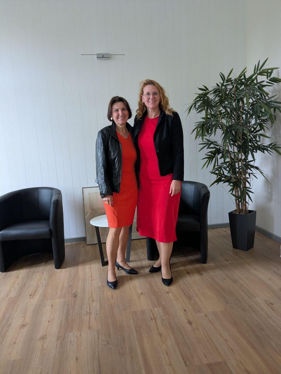 Apropos Jennifer Collin-Feeder: Im Rahmen ihrer Zuhörtour war sie vergangene Woche bei ORAFOL, einem der größten Arbeitgeber in Oranienburg. Dort ließ sie sich erklären, was den Betrieb bewegt. Zuvor traf sie ihre Vorgesetzte, Veltens Bürgermeisterin Ines Hübner (SPD). Der Knaller: Beide zufällig im Partnerlook – schwarzer Blazer, rotes Kleid, schwarze Schuhe. Zufall oder gelebte Sozialdemokratie? In jedem Fall ein modisches Statement mit Signalwirkung!