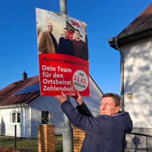 Am 22. Februar wird im Ortsteil Zehlendorf ein neuen Ortsbeirat gewählt. Für die SPD treten Holger Mücke, Ahmet Öztemel und Dominic Kaiser an. Ihre Plakate hängen seit dieser Woche. Zur Erinnerung: Nötig ist die Wahl nur, weil im Oktober Jörg Thomas (AfD) überraschend zurückgetreten ist, um jetzt doch wieder für die gesichert rechtsextremistische Partei bei der Neuwahl anzutreten. Das ist Heuchelei. Denn wer offensichtlich wenig übrig hat für Zehlendorf und keine Verantwortung übernehmen will, der hat auch jetzt nichts im Ortsbeirat zu suchen!